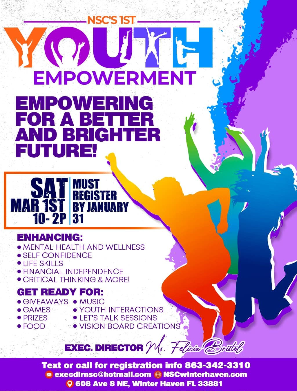 NSC'S 1st YOUTH EMPOWERMENT Empowering For A Better And Brighter Future! Saturday, March 1st 2025 10-2PM Must Register By January 31st